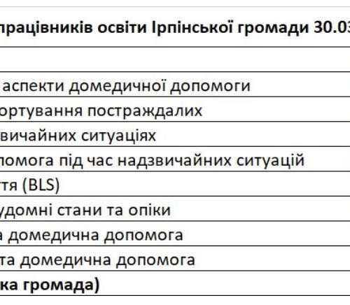 01–02 квітня 2026 року на базі Ірпінського ліцею №2 завершилися практичні заняття тематичного курсу для педагогічних працівників закладів освіти Ірпінської громади «Домедична допомога в навчальних закладах. Safe School Project».